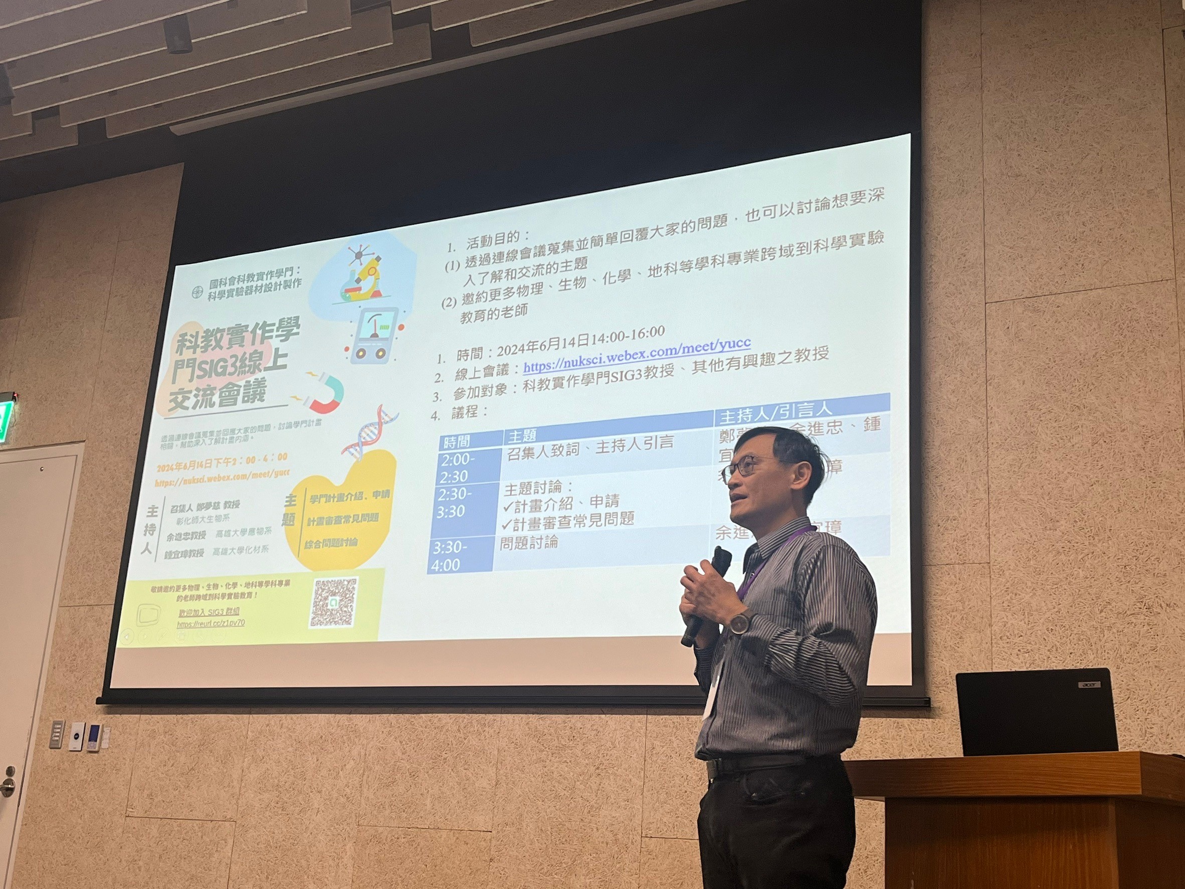 本活動之目的在分享及評估科學教育實作學門計畫的執行情形和具體成效,並提供計畫參與者一個經驗交流的機會和平台,期望透過報告及展示讓各位學者能共同分享、切磋交流與集思廣益,持續為科學教育實作貢獻心力。